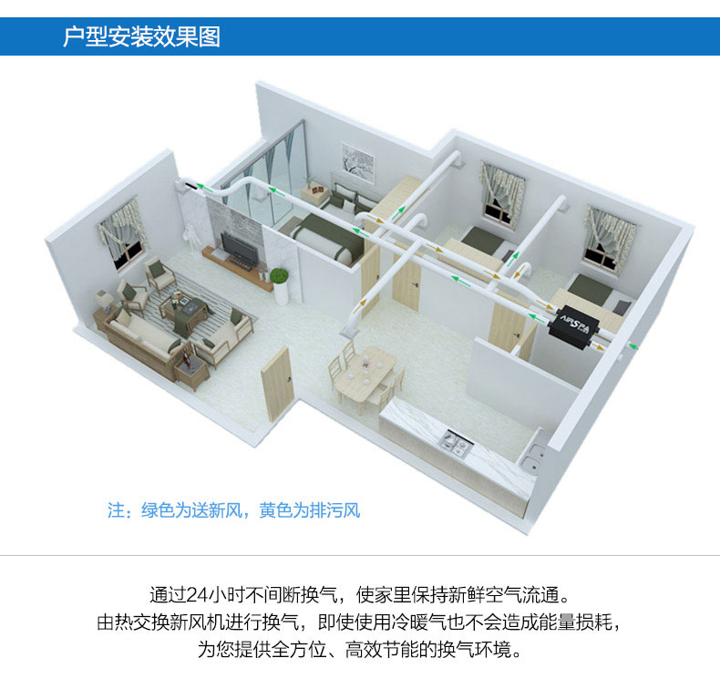 高能效比:采用水平進排風,具非常高的能效比,可回收70%以上能量 高效過濾:采用歐洲標準H13級過濾,多重過濾;PM2.5過濾99%以上 雙向流新風機:訂機采用雙核動力設計,動力強,體積?。徊捎弥绷鳠o刷電機,低噪音,低能耗